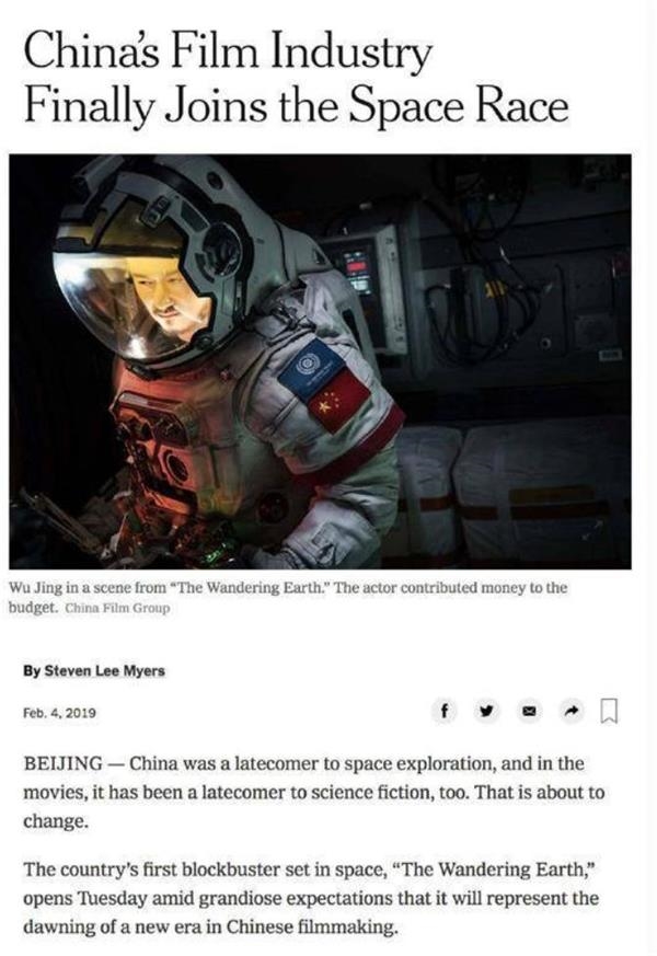 《纽约时报》甚至将中国在太空领域的突破与电影联系起来,认为中国科幻电影制作的新时代,与太空探索的新时代,都开始了。