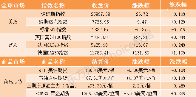 隔夜外盘:欧股普涨美股涨跌互现 道指日线终结四连涨