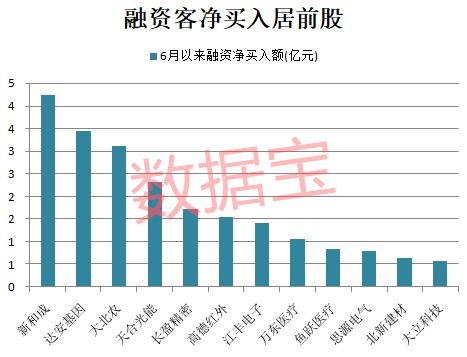 部分业绩预增股成为融资客追捧对象,数据显示,6月以来新和成、达安基因、大北农、天合光能、长盈精密、高德红外、江丰电子、万东医疗等股融资净买入超亿元。融资净买入最高的是新和成,达到4.24亿元,最新融资余额突破20亿元。